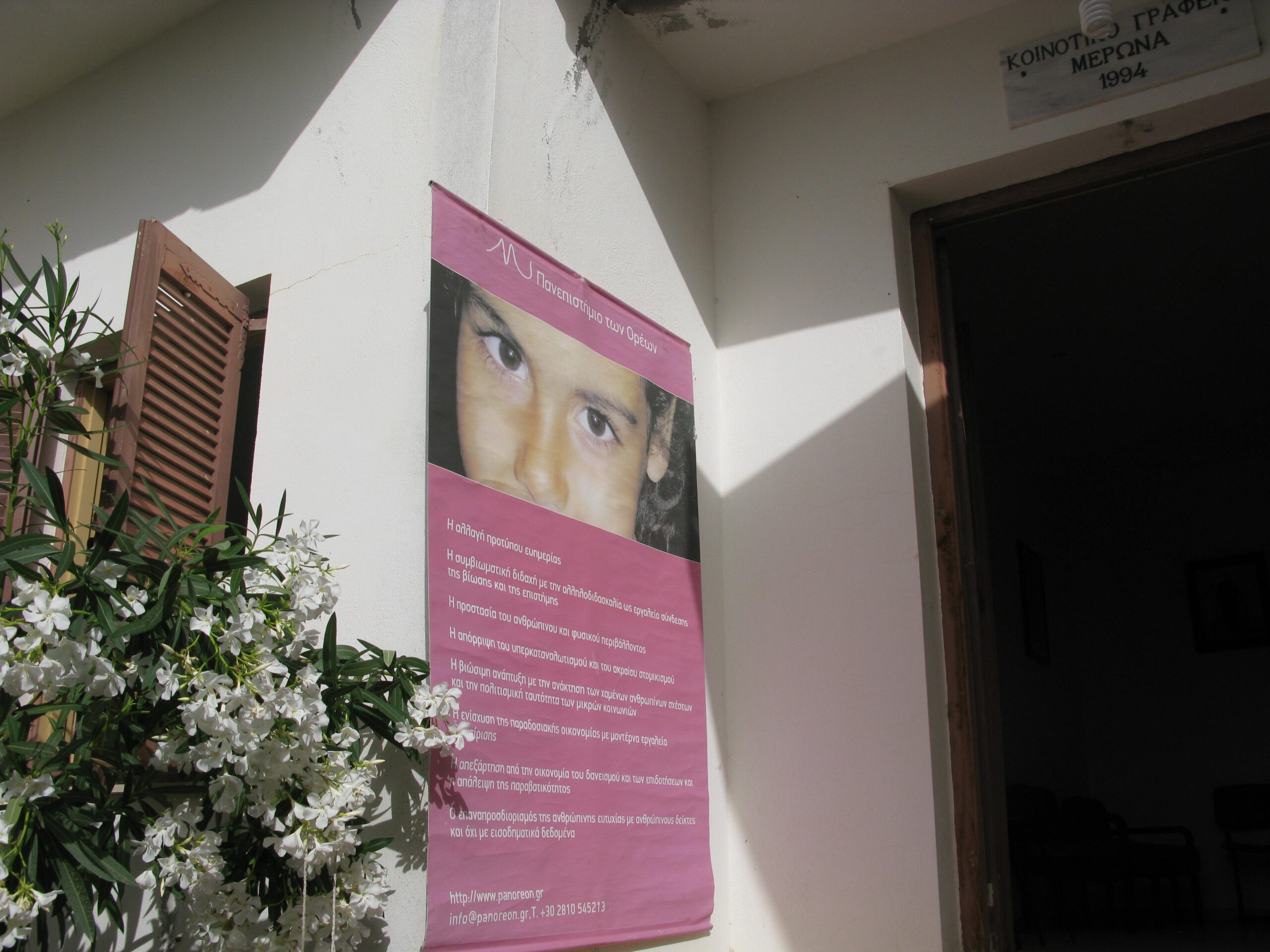 Σε συνεργασία με τις κλινικές του ΠAΓΝΗ και του ΒΕΜΜΟ -Ινστιτούτο Οπτικής και Όρασης, της Οφθαλμολογίας, με τον καθ. Ι. Παλλήκαρη και της Κοινωνικής & Οικογενειακής Ιατρικής, με τον καθ. Χ. Λιονή, εξέτασαν περί τους 85 κατοίκους ασθενείς, κυρίως ηλικιωμένους και παιδιά, στο χωριό Μέρωνα.