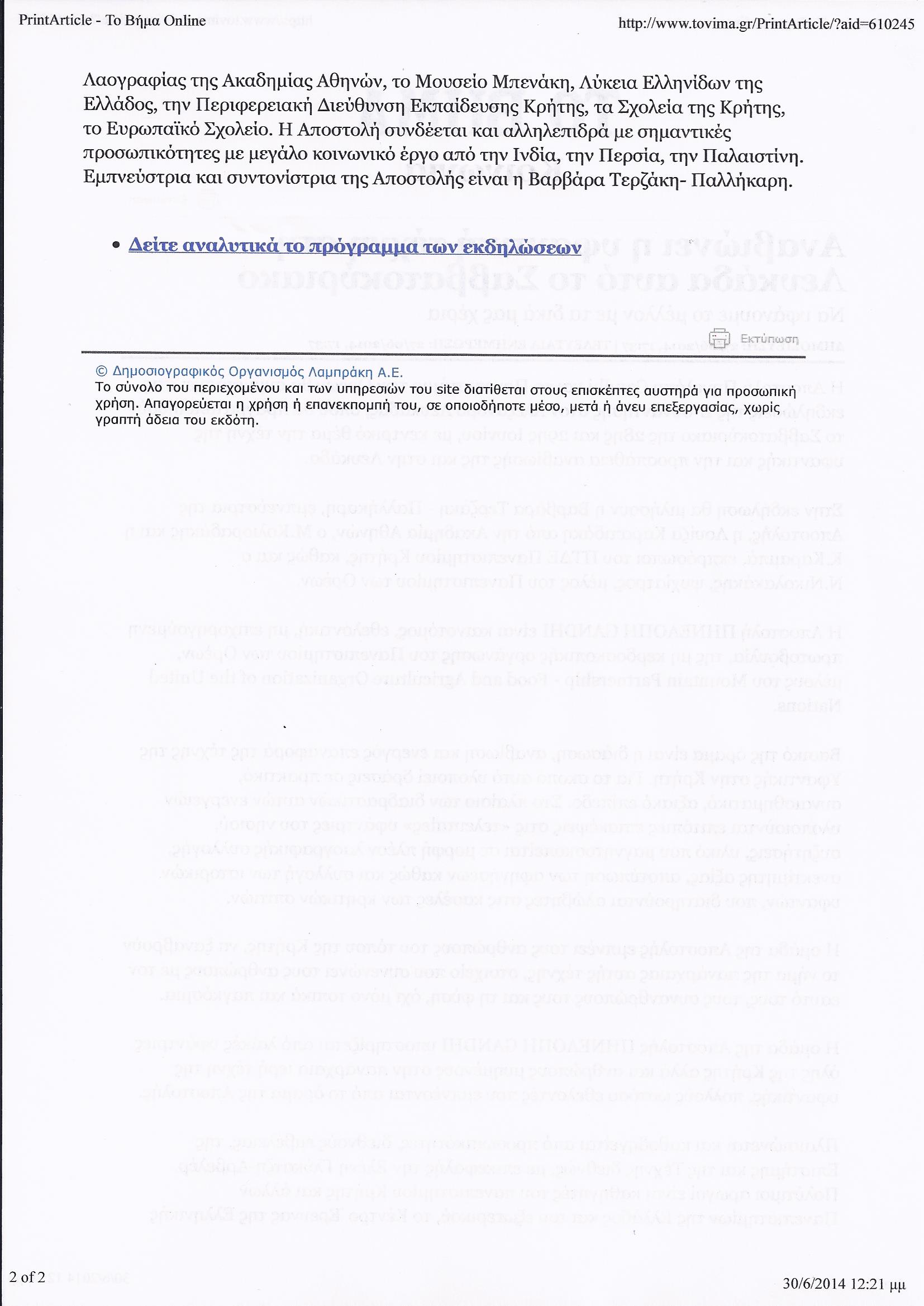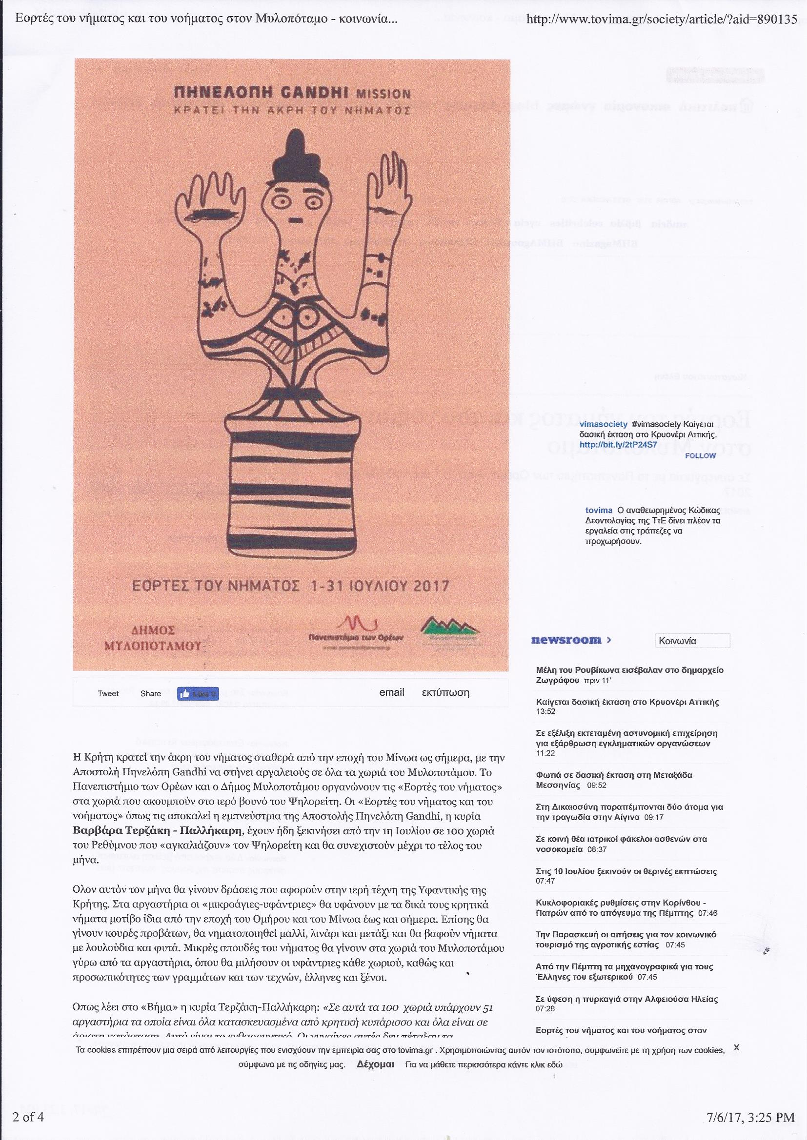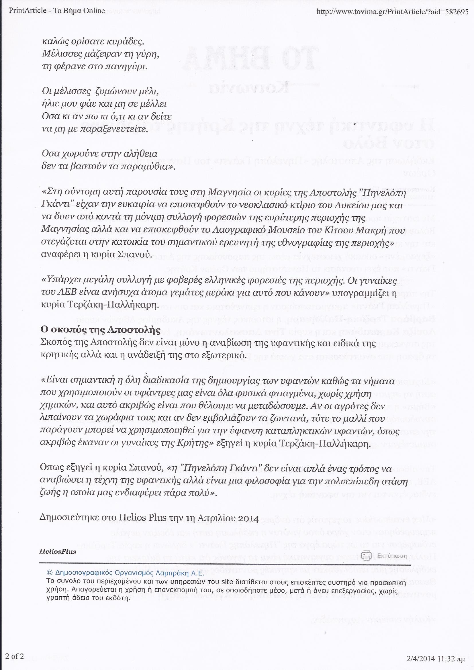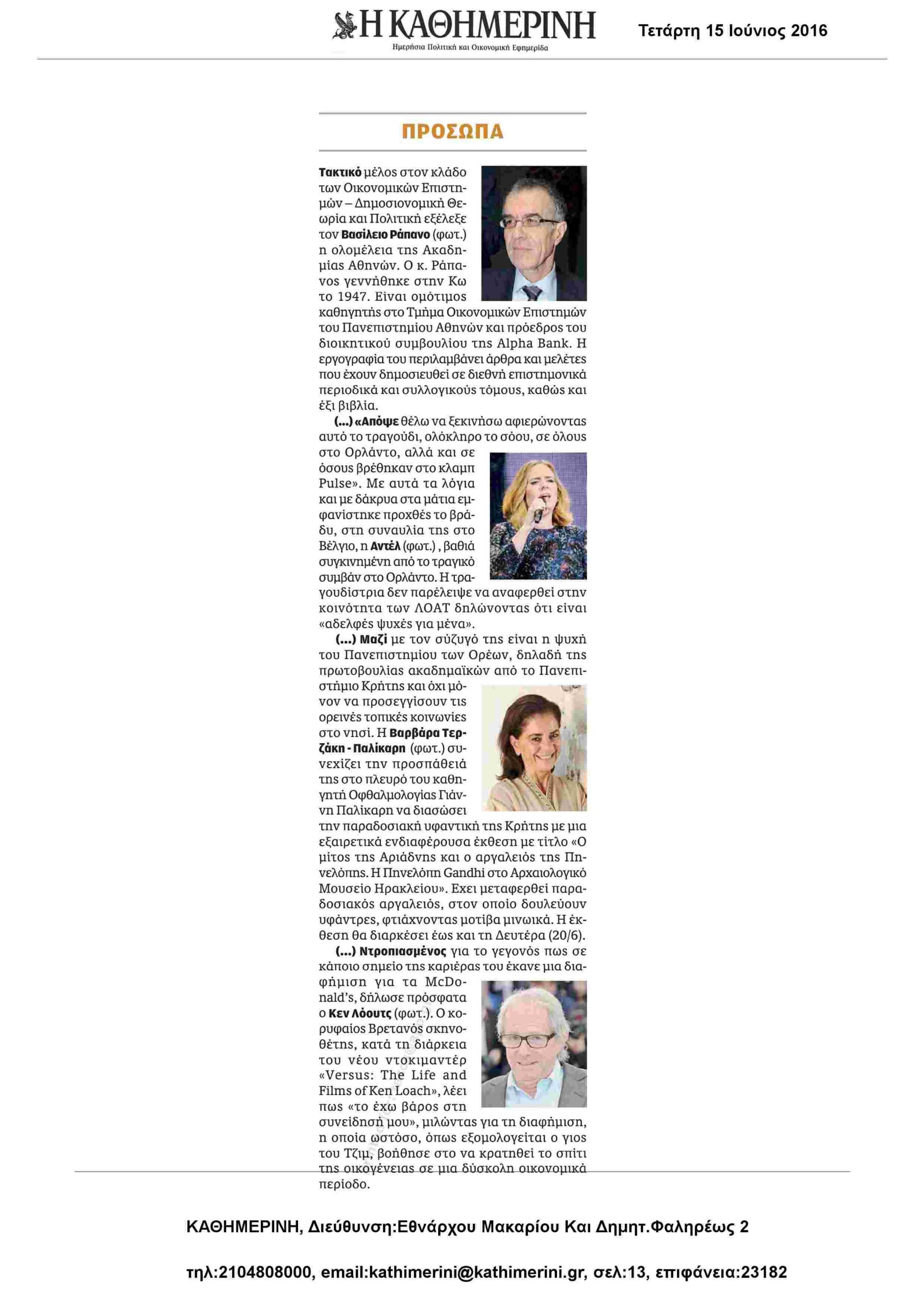 25.05.2016, Συνέντευξη της κ. Β. Τερζάκη Παλλήκαρη στην ραδ/κη εκπομπή ¨Της μέρας τα γυρίσματα¨ στο Δεύτερο Πρόγραμμα
