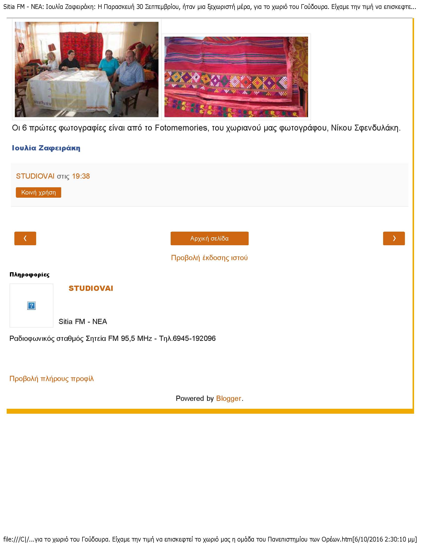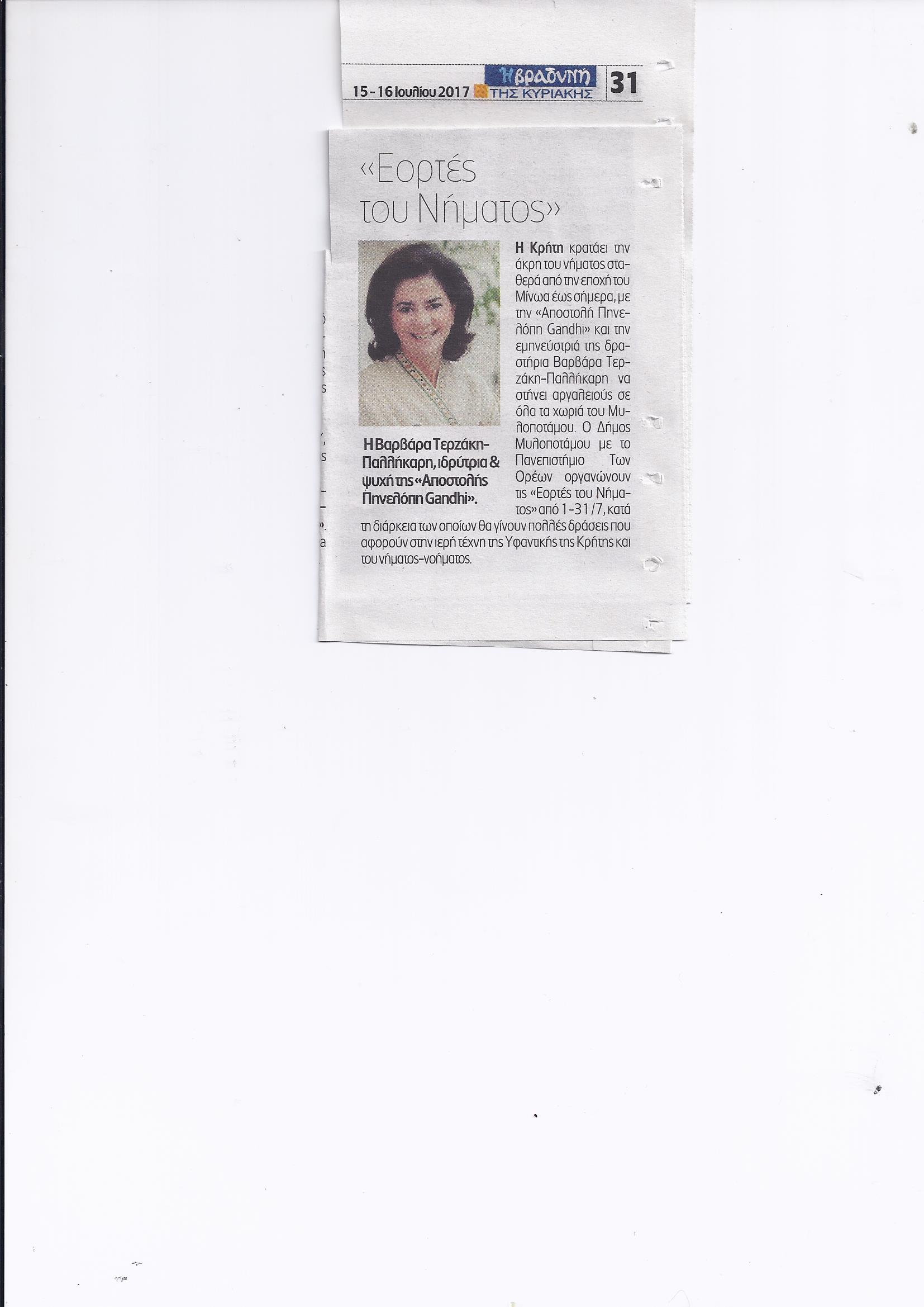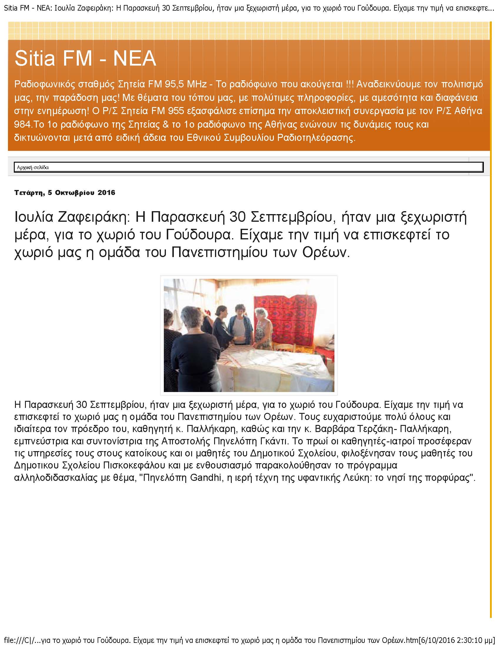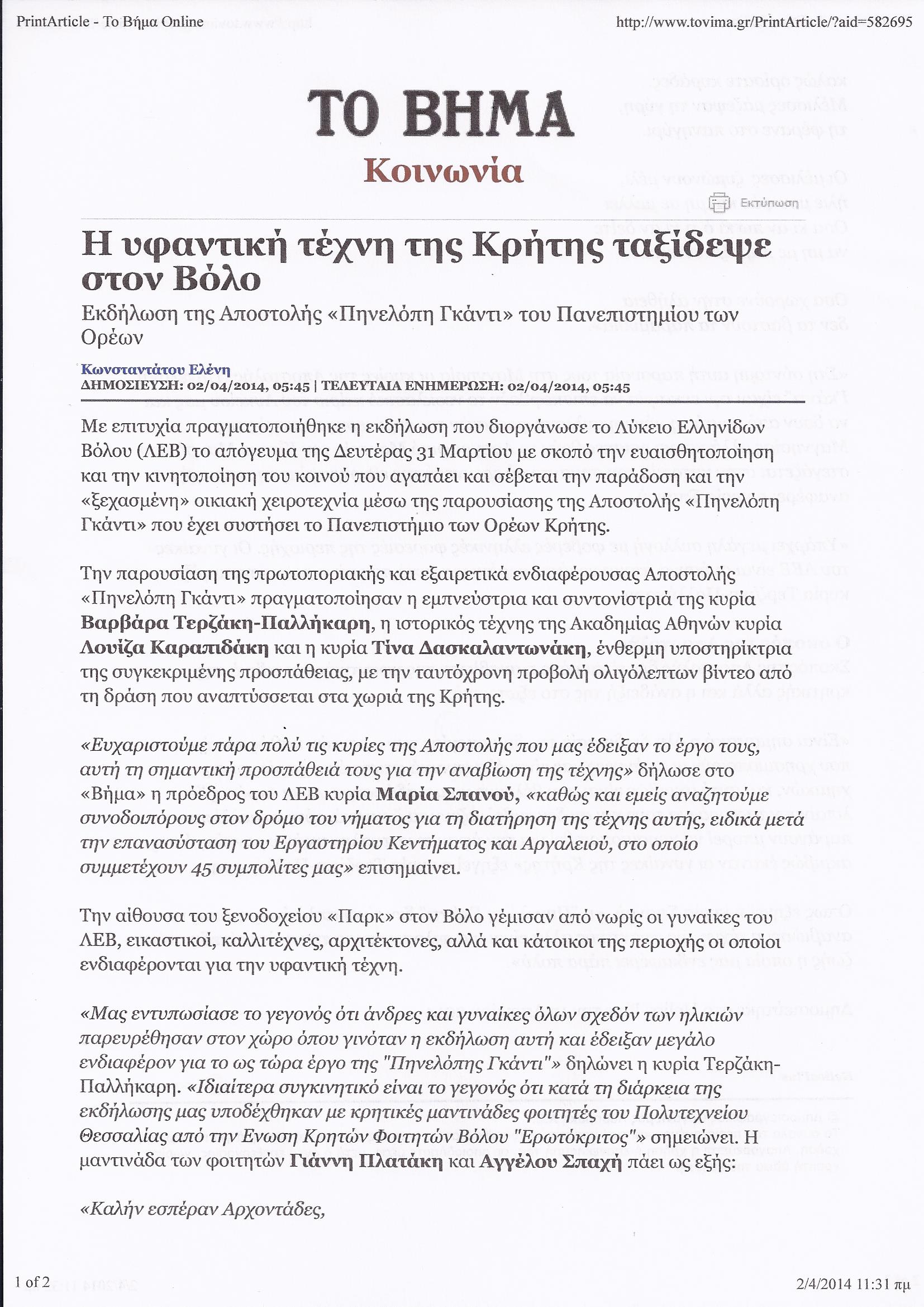 25.05.2016, Συνέντευξη της κ. Β. Τερζάκη Παλλήκαρη στην ραδ/κη εκπομπή ¨Της μέρας τα γυρίσματα¨ στο Δεύτερο Πρόγραμμα