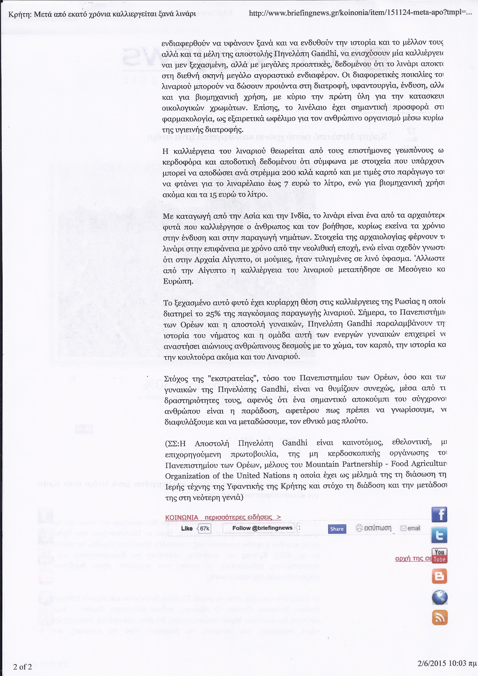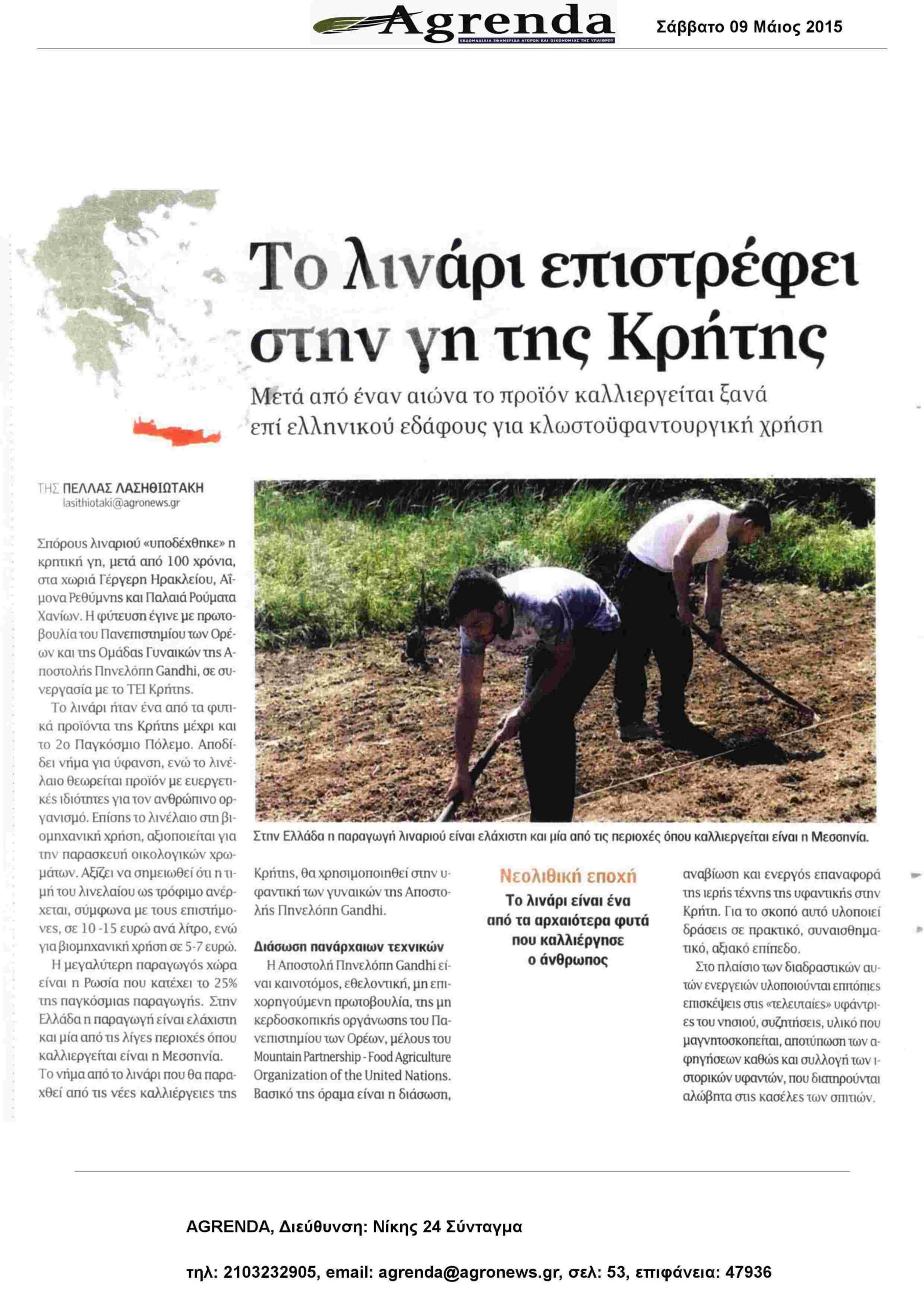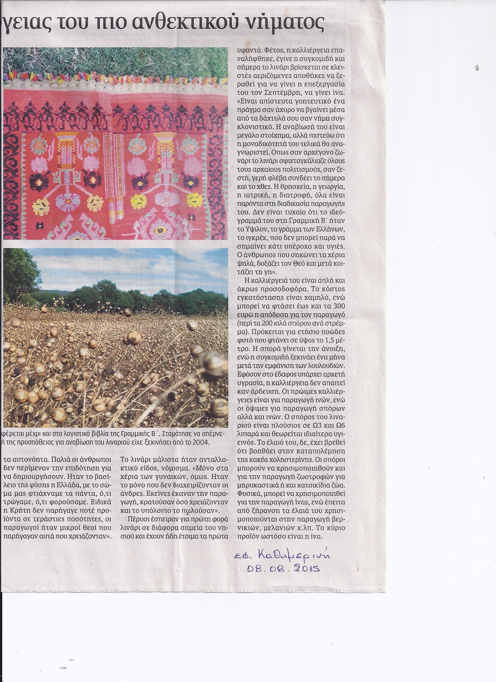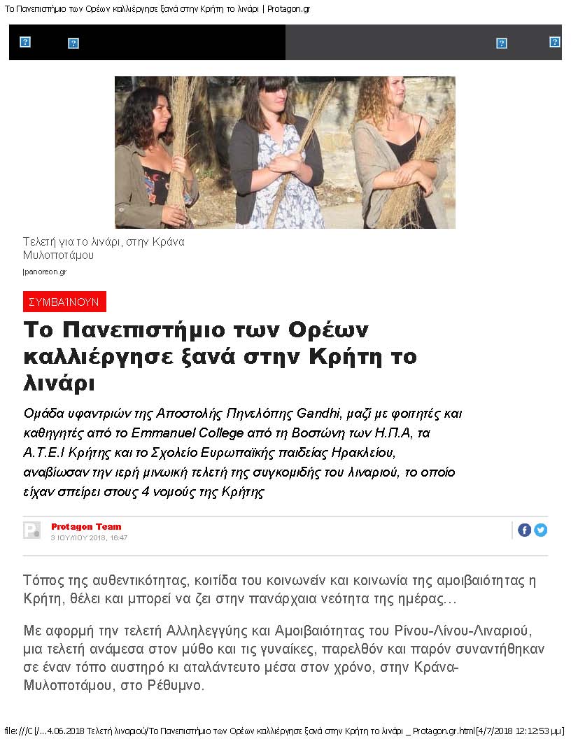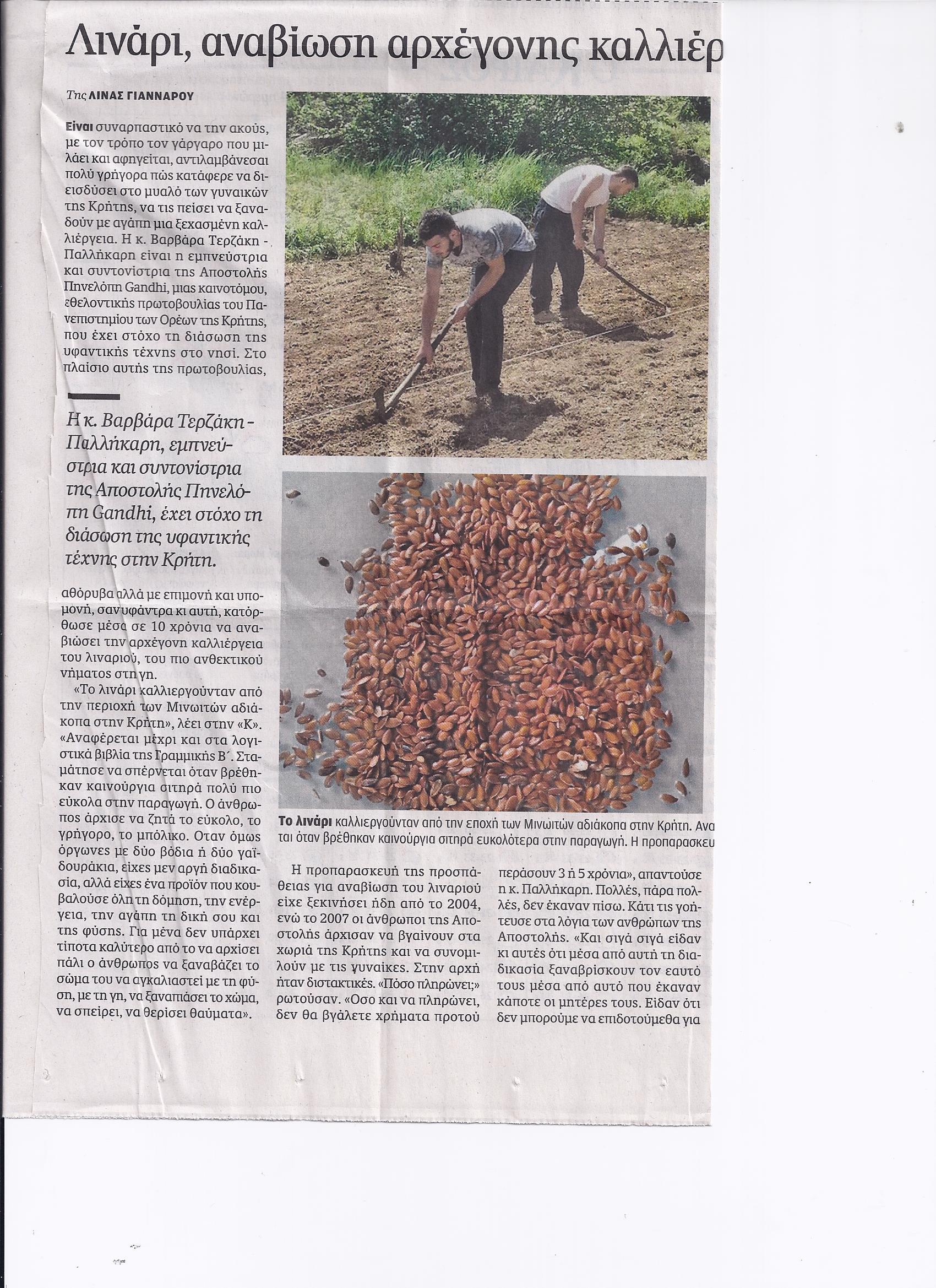 20.11.2017 Καλλιέργεια λιναριού της Αποστολής Πηνελόπη Gandhi από το Malcolm H. Wiener Laboratory for Archaeological Science