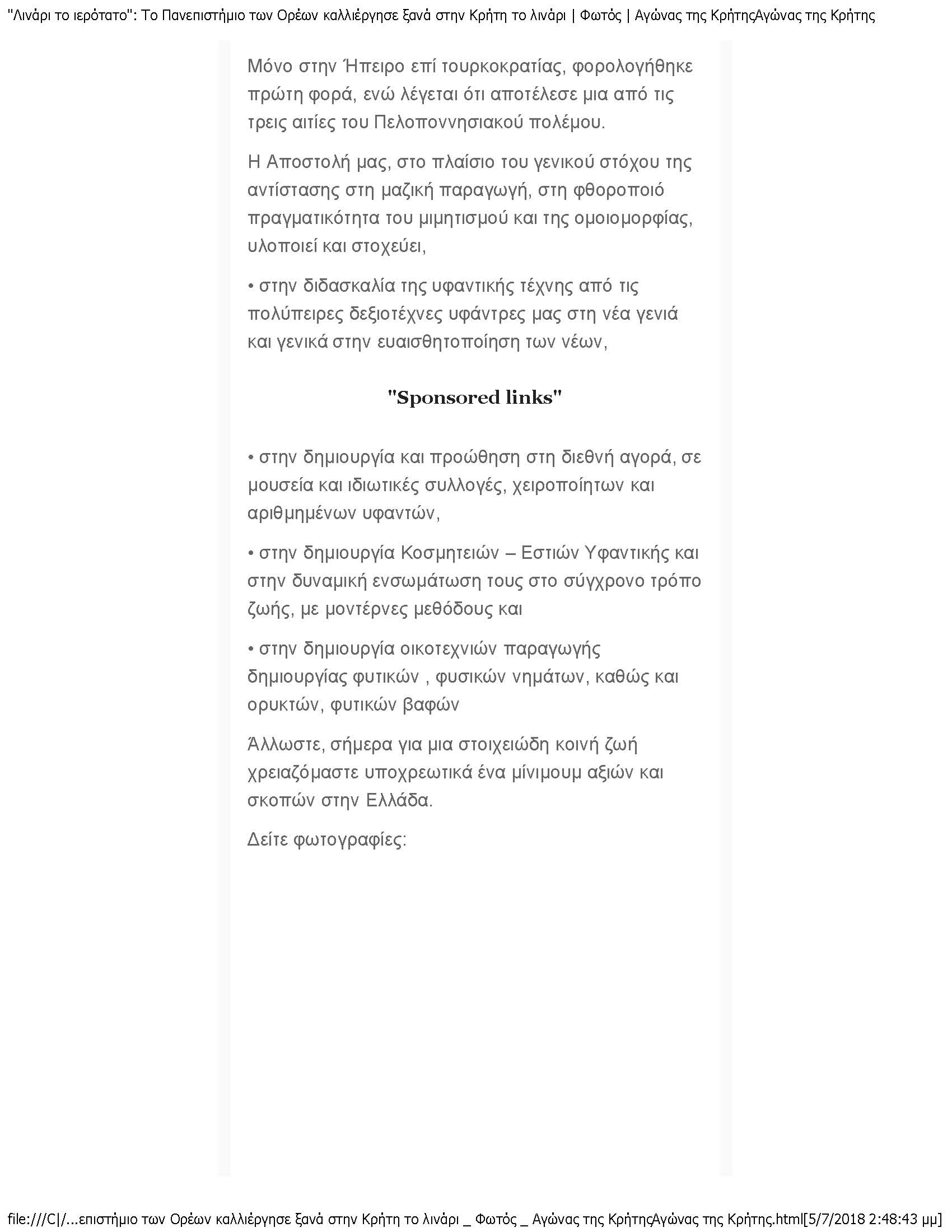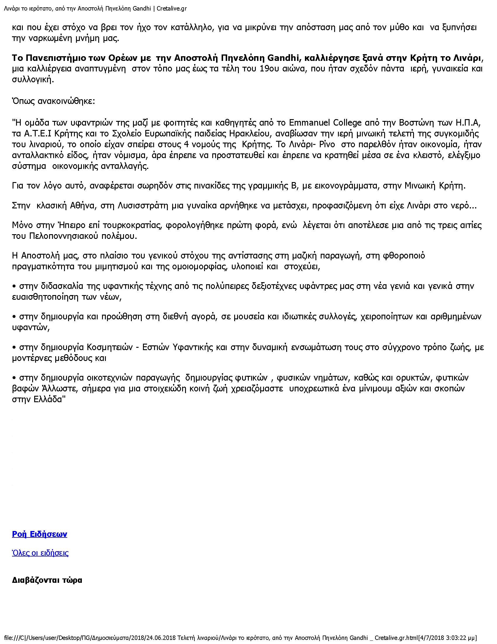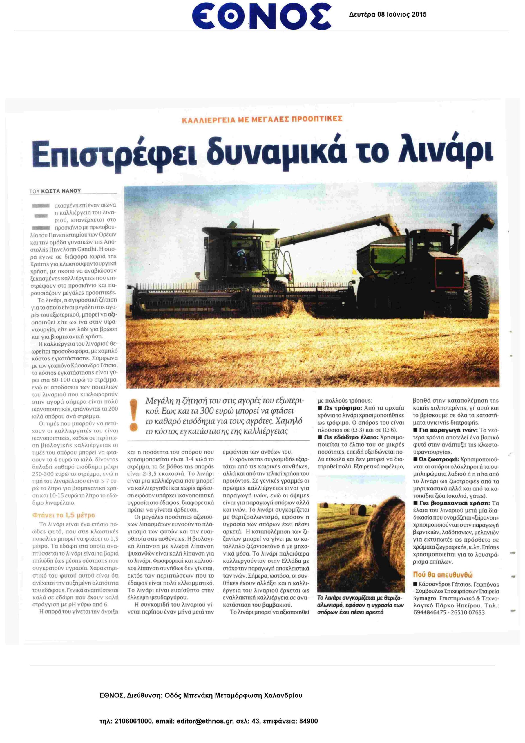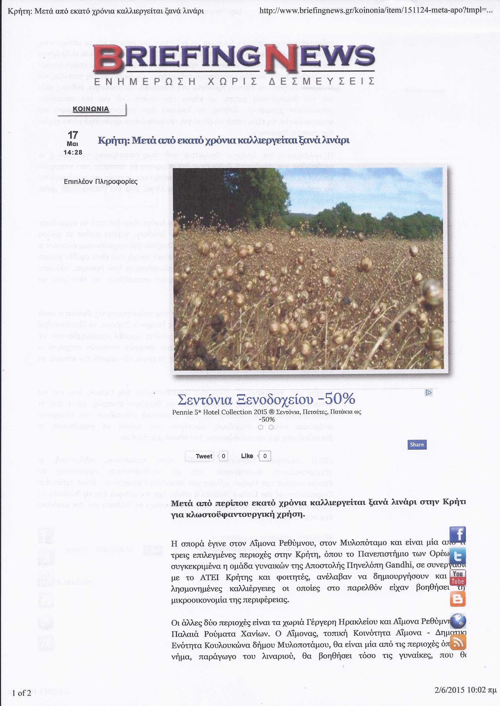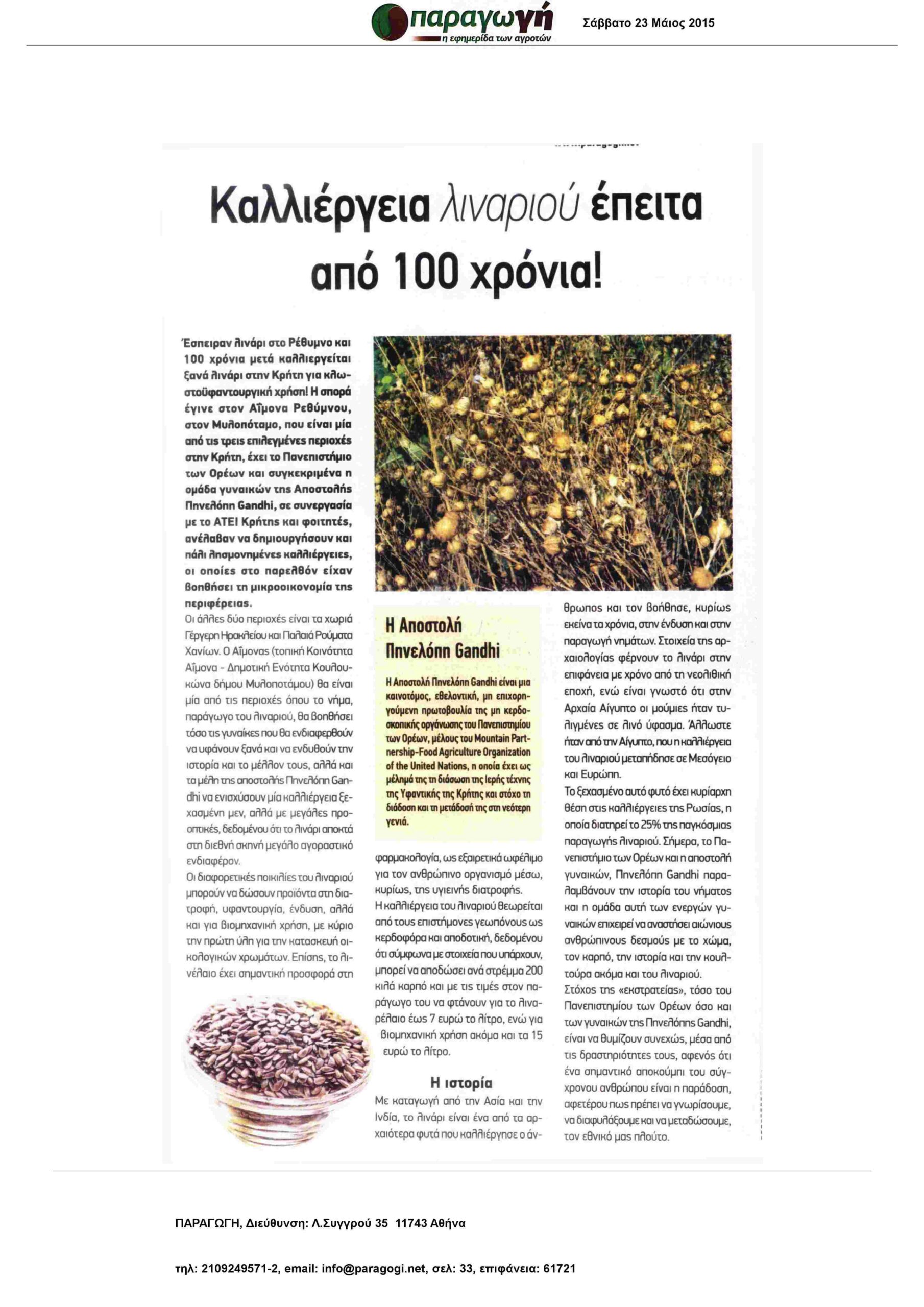 20.11.2017 Καλλιέργεια λιναριού της Αποστολής Πηνελόπη Gandhi από το Malcolm H. Wiener Laboratory for Archaeological Science