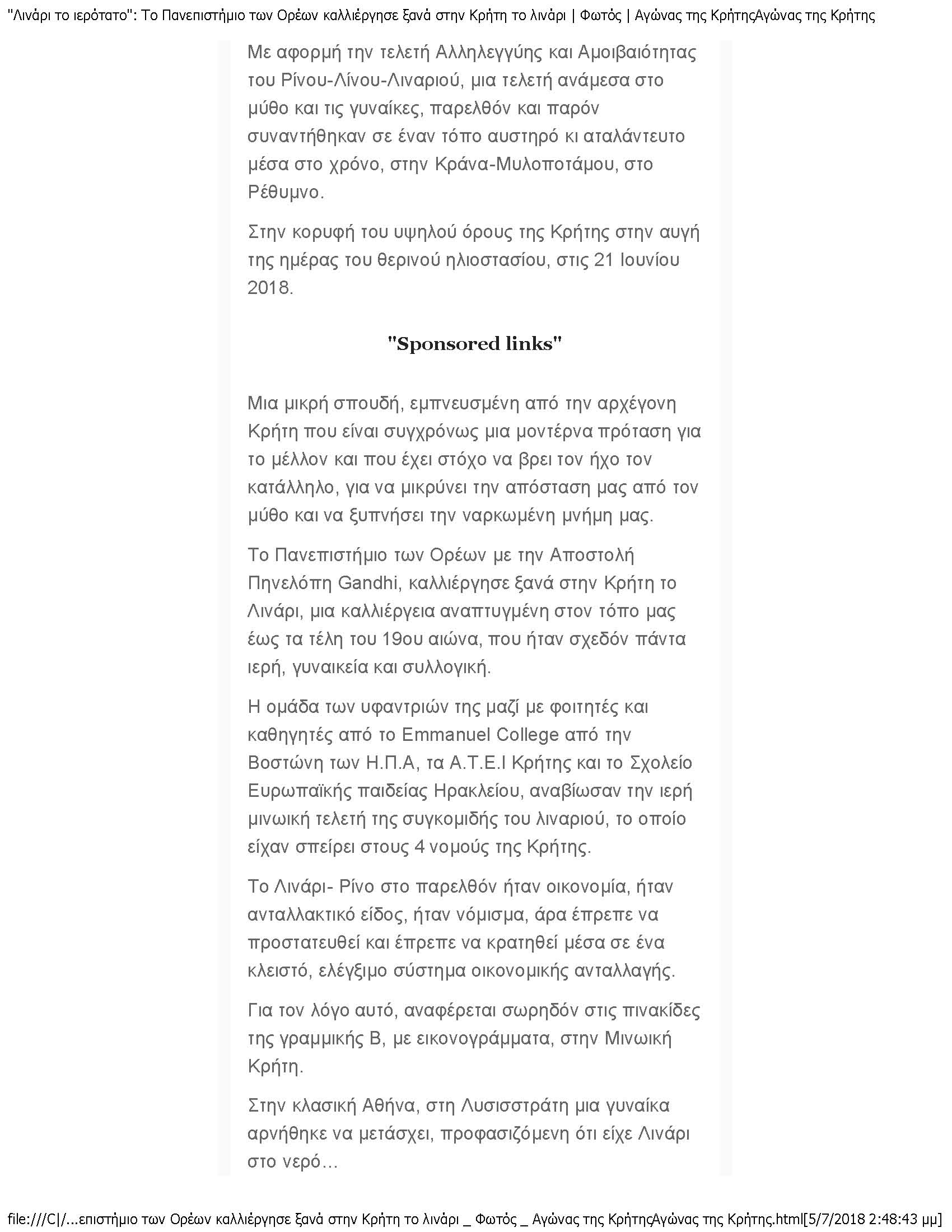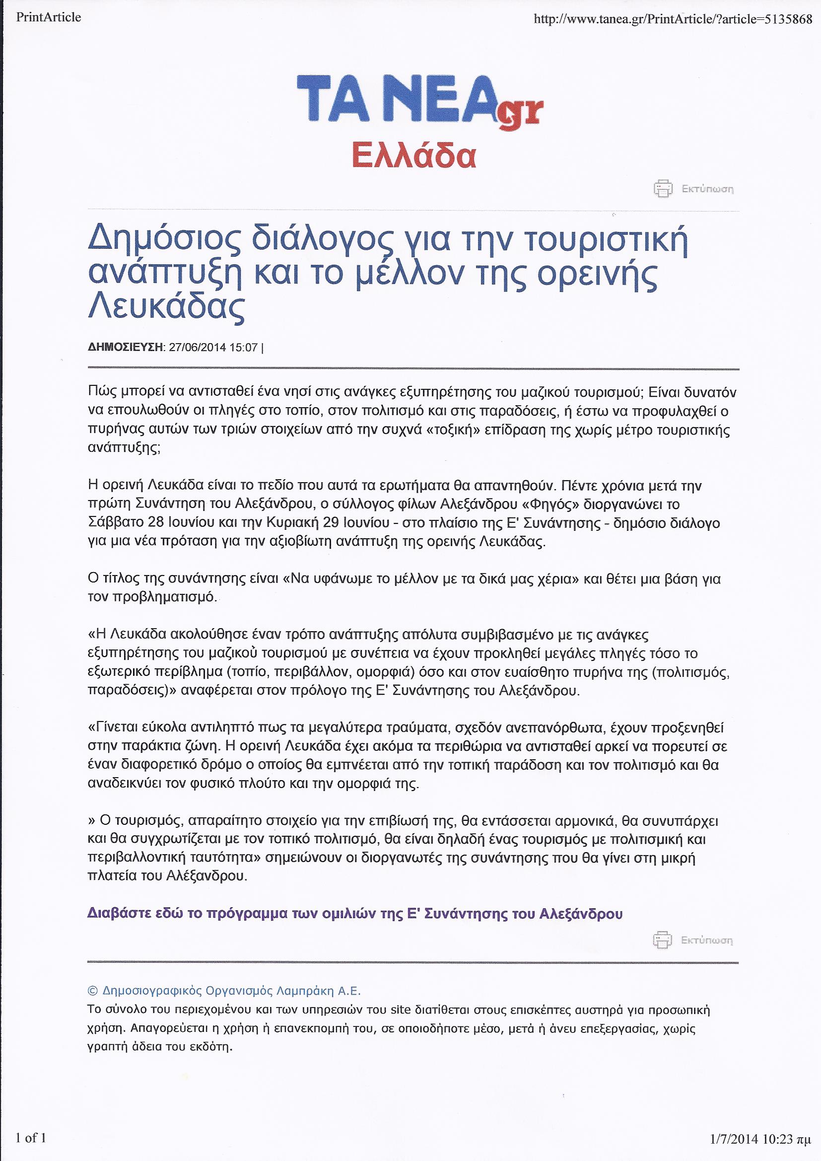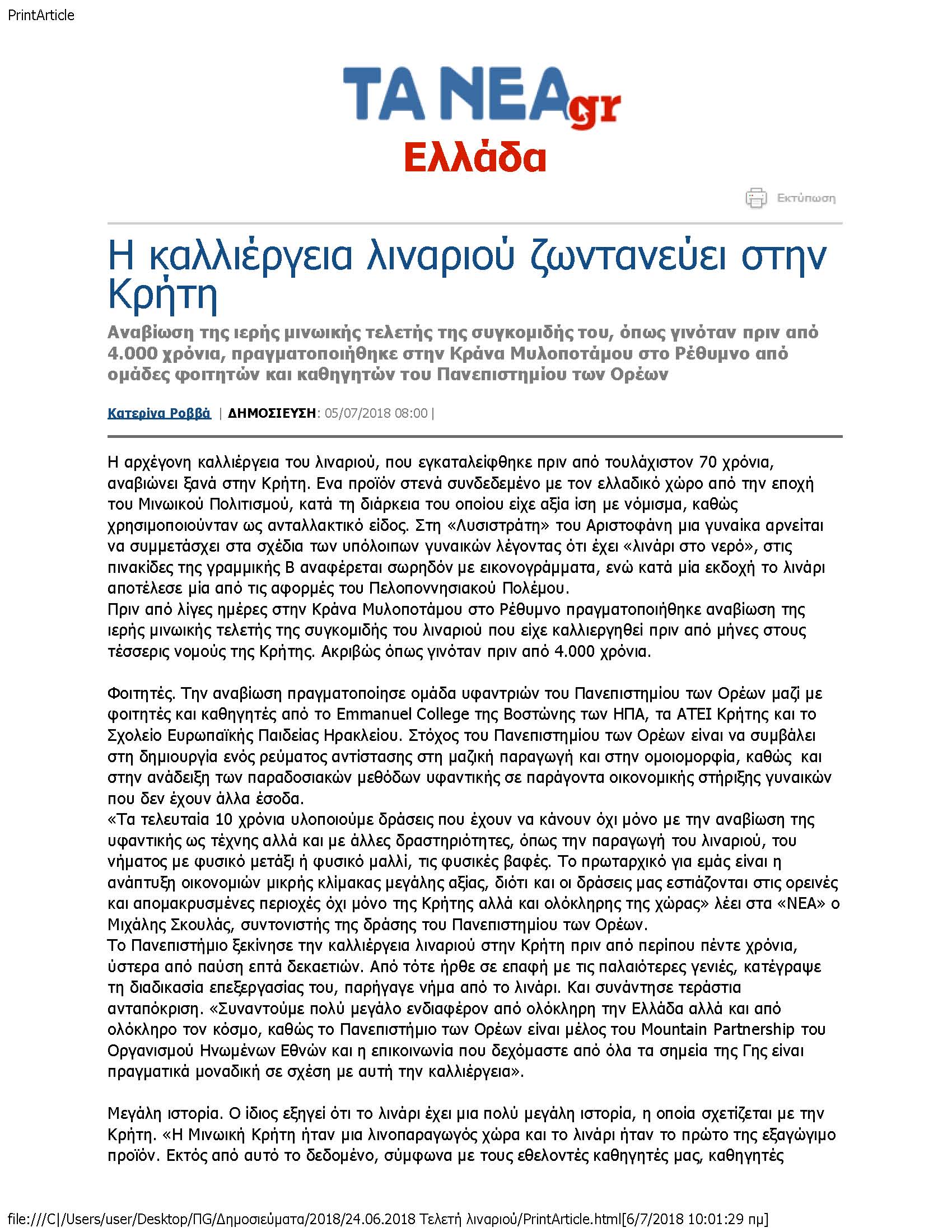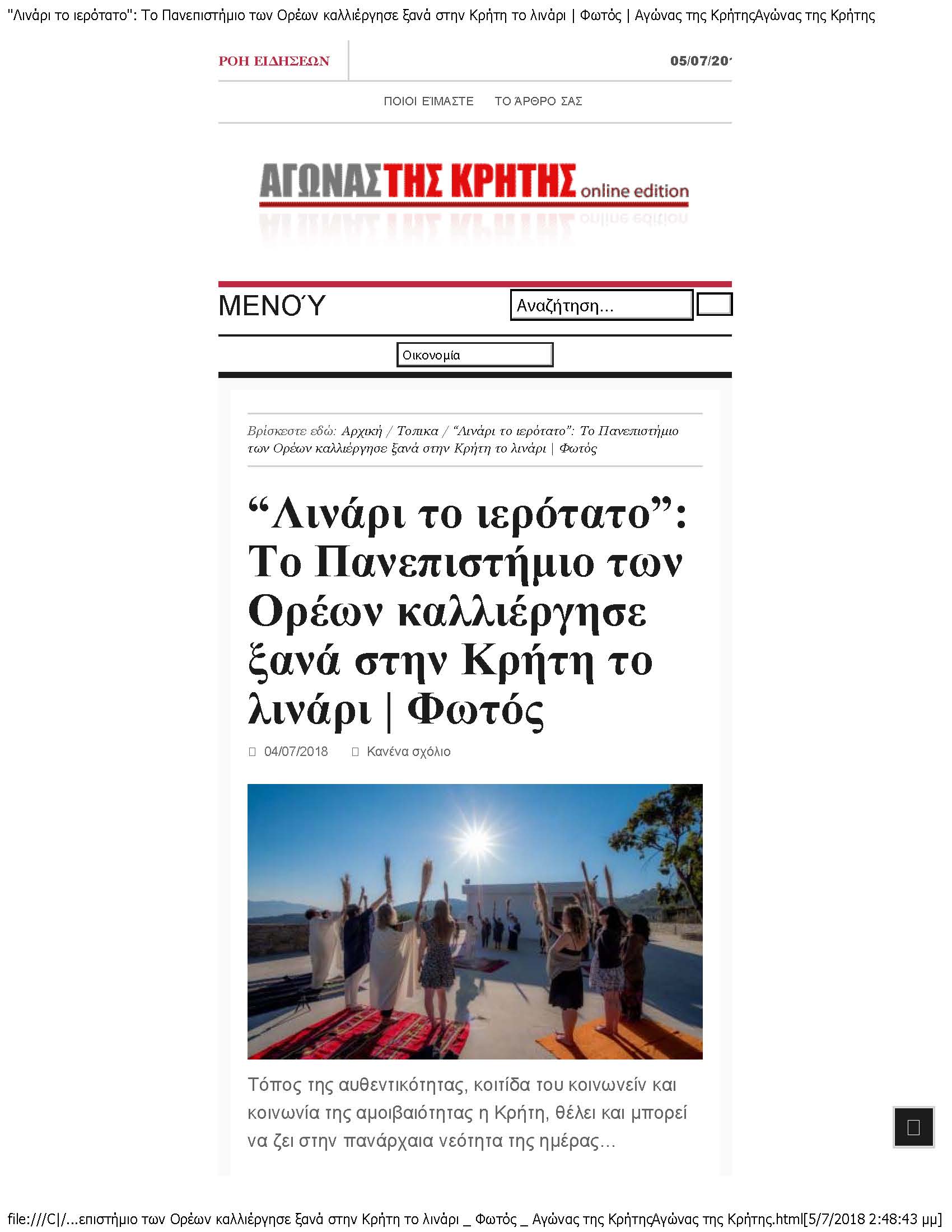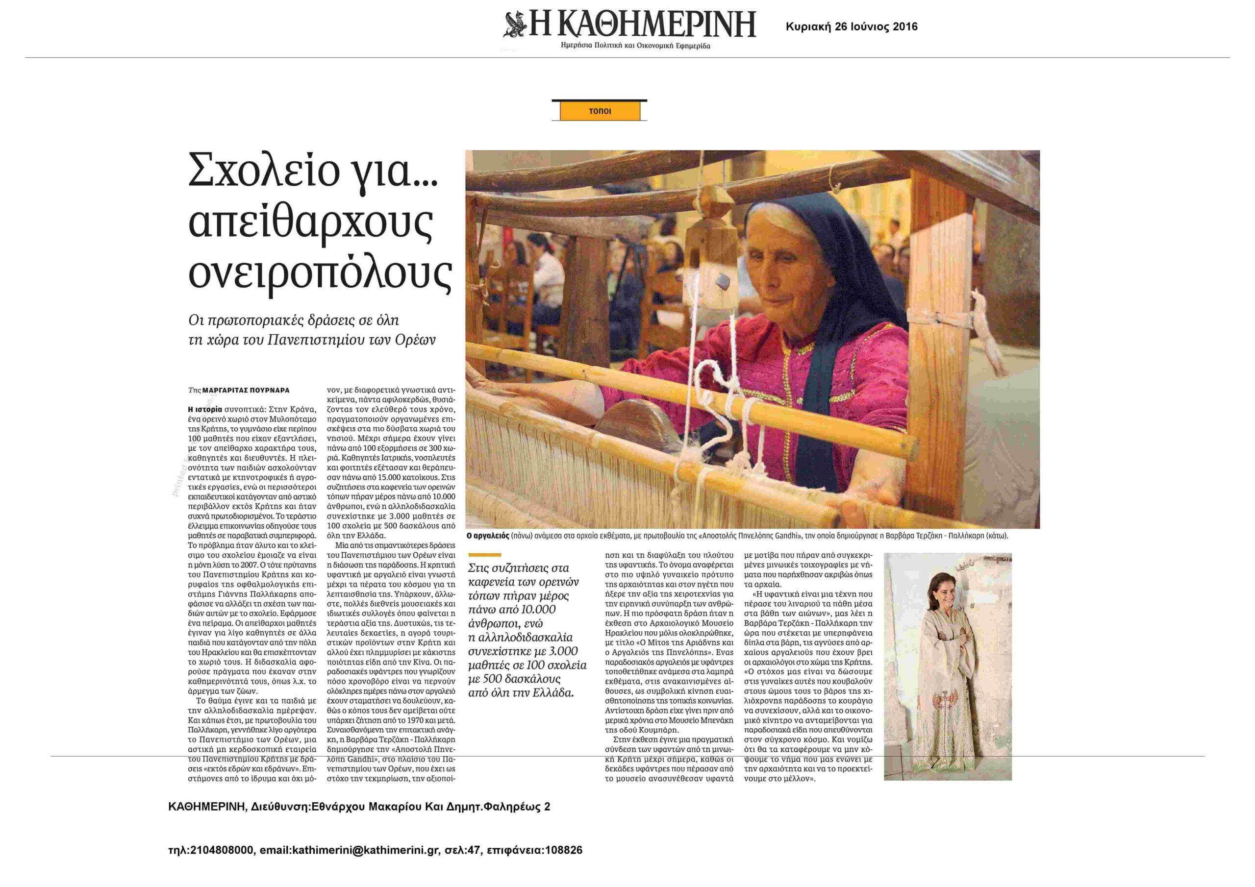 26.08.2018 Στα βουνά είναι η γνώση εφ. Καθημερινη σελ.2
