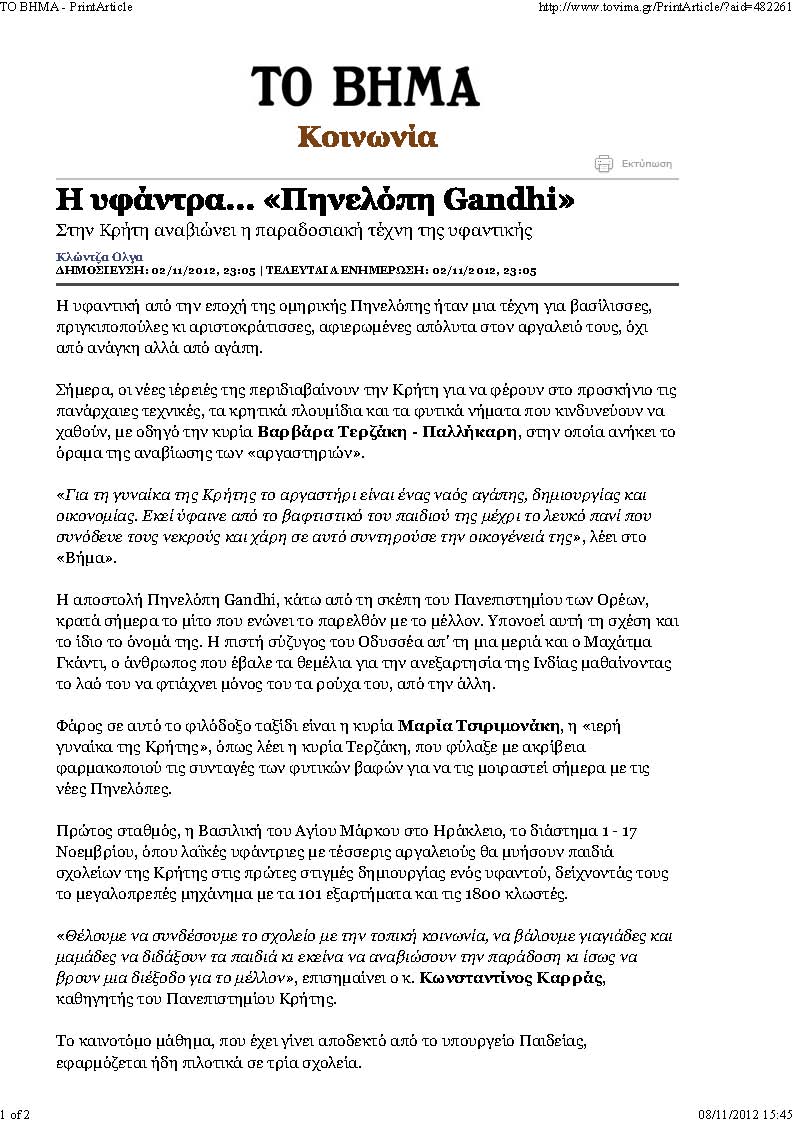 «Πηνελόπη Gandhi» το νήμα του αργαλειού που υφαίνει το σχέδιο του μέλλοντος – Η ΚΑΘΗΜΕΡΙΝΗ
