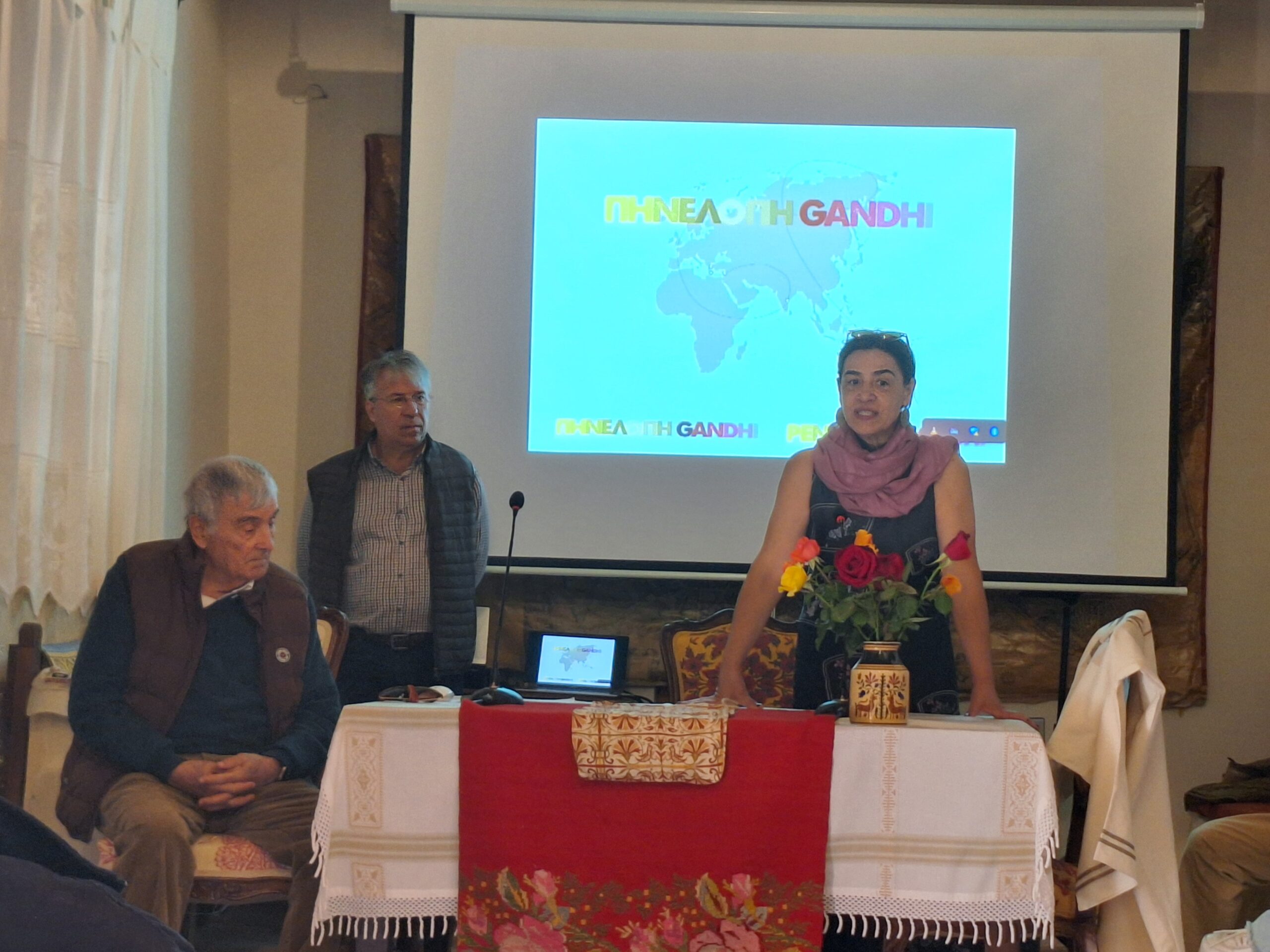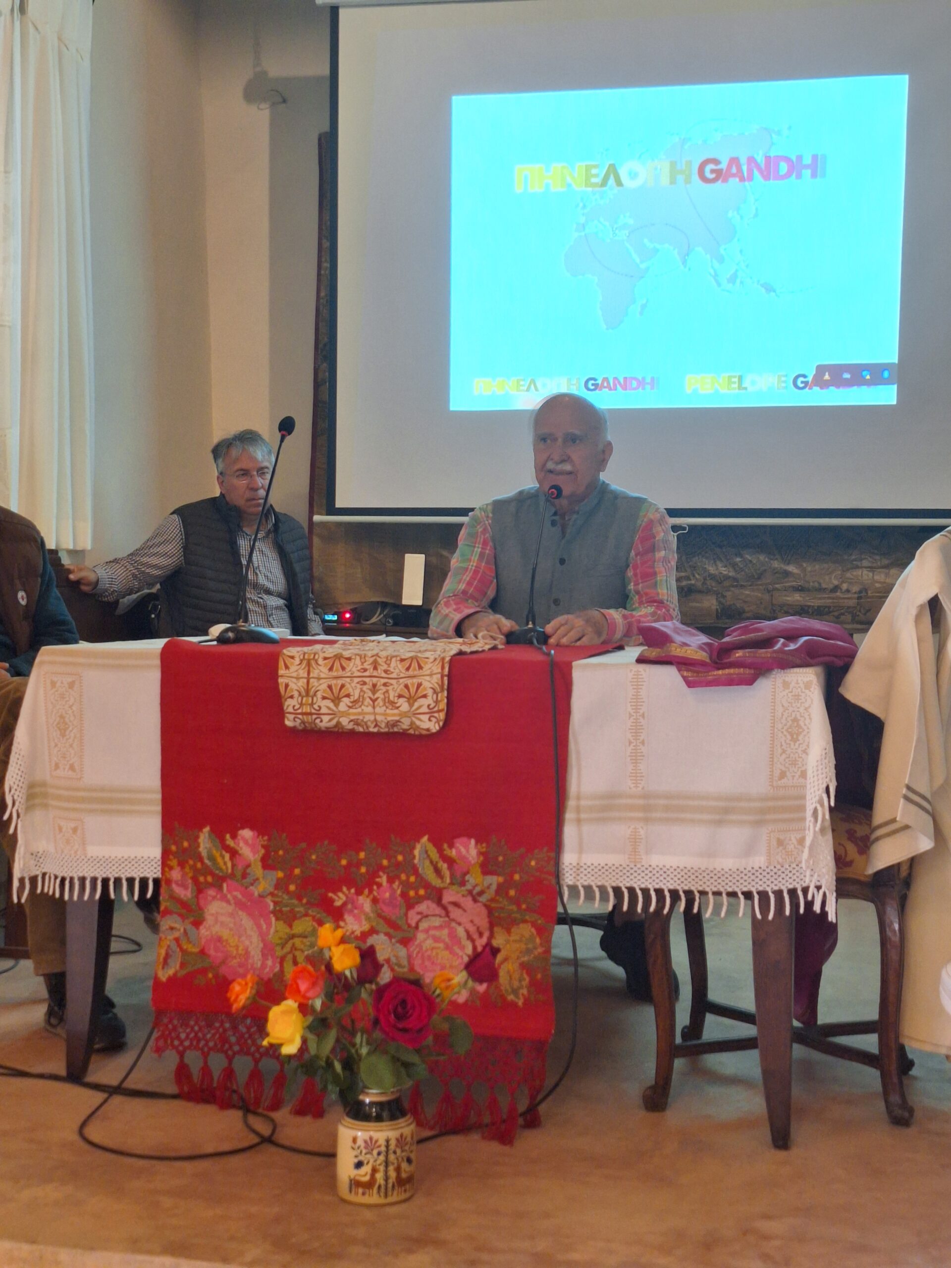 Ακολούθησαν ομιλίες από τον καθ. κ. Ι. Παλλήκαρη, τον καθ. κ. Ι. Πυργιωτάκη και την κ. Β. Τερζάκη Παλλήκαρη, εμπνεύστρια της Αποστολής Πηνελόπη Gandhi.